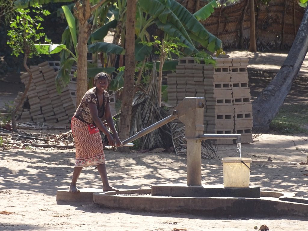 Beim Trinkwasserbrunnen konnten wir mit unseren Schippen nur wenig ausrichten! Da musste schon ein richtiger Bagger her, um die notwendige Tiefe von 15 bis 20 Metern auszuheben – übrigens eine logistische Herausforderung, den monströsen Bagger über die Sandpisten nach Guigobane zu bekommen!
