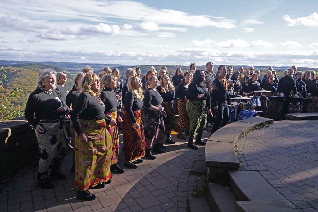 „Wow, das ist ja mal ein Chor!“, kommentierte der Moderator von SR 2 Kultur-Radio unsere afrikanisch angehauchte Version von OH HAPPY DAY nach dem Schlussakkord. Der fertige Clip dauert nur drei Minuten – aber dahinter verbirgt sich viel mehr: die Studioaufnahmen mit Chor, Band und Solisten und schließlich der Videodreh an der Cloef, dem Aussichtspunkt an der berühmten Saarschleife. Wir sind so dankbar, dass wir das alles erleben durften.