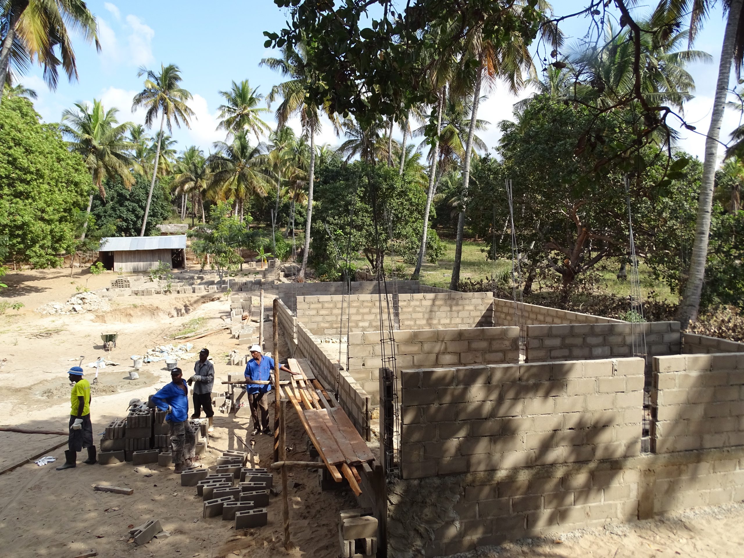 Und es geht voran! Am Tag unserer Abreise steht zumindest der Rohbau. Das mit dem Dach und den Fenstern wird auch ohne uns gehen.